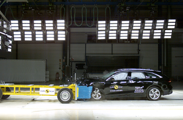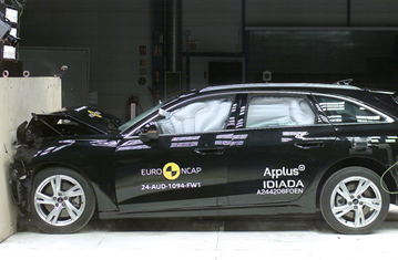 The passenger compartment remained stable in the frontal offset test. Dummy readings indicated good protection of the knees and femurs of both the driver and front passenger. Audi demonstrated that a similar level of protection would be provided to occupants of different sizes and to those sitting in different positions. Protection of the driver’s chest was rated as marginal, based on dummy readings of compression. Analysis of the deceleration of the impact trolley during the test, and analysis of the deformable barrier after the test, revealed that the car would be a somewhat aggressive partner in a frontal collision. In the full-width rigid barrier test, protection of the rear passenger’s chest was rated as marginal, based on dummy readings of compression. Otherwise, all critical parts of the body were well or adequately protected for both occupants. In the side barrier test, protection of all critical body regions was good, and the A6 scored maximum points in this part of the assessment. However, in the more severe side pole impact, chest protection was rated as marginal, based on rib compressions. Control of excursion (the extent to which a body is thrown to the other side of the vehicle when it is hit from the far side) was found to be adequate. The Audi A6 has a countermeasure to mitigate against occupant-to-occupant injuries in such impacts. The airbag performed well in Euro NCAP’s tests with dummy readings indicating good protection for both the driver and passenger. Tests on the front seats and head restraints demonstrated good protection against whiplash injuries in the event of a rear-end collision. A geometric analysis of the rear seats also indicated good whiplash protection. The car has an advanced eCall system which alerts the emergency services in the event of a crash, and a system to prevent secondary impacts after the car has been in a collision. Audi demonstrated that the doors and windows would be openable to allow occupants to escape in the event of vehicle submergence.