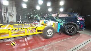 The passenger compartment of the Puma remained stable in the frontal offset test. Dummy readings indicated good protection of the knees and femurs of the driver and passenger. Ford showed that a similar level of protection would be provided to occupants of different sizes and to those sitting in different positions. Protection of the driver's chest was rated as marginal. In the full-width rigid barrier test, protection of all critical body areas was good or adequate for both the driver and rear passenger. In both the side barrier and the more severe side pole tests, protection of all critical body areas was good and the car scored full points in both of these tests. Tests on the front seats and head restraints demonstrated good protection against whiplash injuries in the event of a rear-end collision. A geometric assessment of the rear seats also indicated good whiplash protection. The standard-fit autonomous emergency braking (AEB) system performed well in tests of its functionality at the low speeds at which many whiplash injuries occur, with collisions avoided or mitigated in all test scenarios.