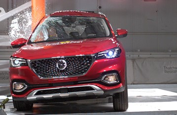 The passenger compartment of the HS remained stable in the frontal offset test. Dummy readings indicated good protection of the knees and femurs of both the driver and passenger. MG showed that, with the exception of the underside of the steering column, a similar level of protection would be provided to occupants of different sizes and to those sitting in different positions. In the full-width rigid barrier test, protection of the driver was good for all critical parts of the body, and was good or adequate for the rear passenger. In the side barrier impact, all critical body areas were well protected and the HS scored maximum points in this test. In the more severe side pole test, protection of the chest was rated as weak, based on dummy readings of rib compression, while that of other body areas was good. Tests on the front seats and head restraints demonstrated good protection against whiplash injuries in the event of a rear-end collision. A geometric assessment of the rear seats also indicated good whiplash protection. The standard-fit autonomous emergency braking (AEB) system performed well in tests of its functionality at the low speeds, typical of city driving, at which many whiplash injuries occur, with collisions avoided in all test scenarios.