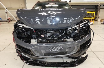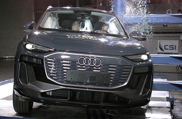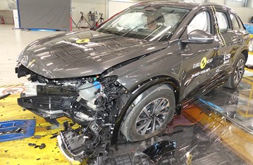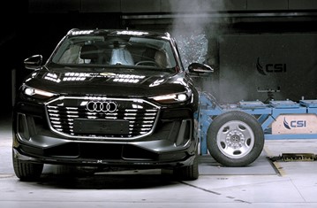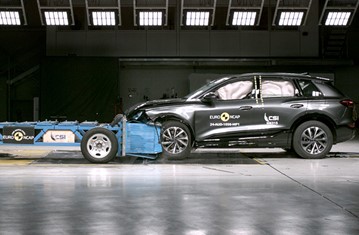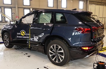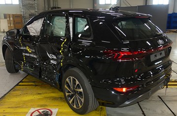 The passenger compartment of the Q6 e-tron remained stable in the frontal offset test. Protection was good for all critical body areas of both the driver and passenger, and full points were scored for the dynamic dummy results. Audi demonstrated that good protection would be provided to the knees and femurs of occupants of different sizes and to those sitting in different positions. Analysis of the deceleration of the impact trolley during the test, and analysis of the deformable barrier after the test, revealed that the Q6 e-tron would be a somewhat aggressive impact partner in a frontal collision. In the full-width rigid barrier test, protection was good or adequate for all critical body areas of the driver and rear passenger. In the side barrier test, protection of all critical body areas was good and the car scored maximum points. In the more severe side pole impact, protection was good or adequate. Control of excursion (the extent to which a body is thrown to the other side of the vehicle when it is hit from the far side) was found to be adequate. The Q6 e-tron has a countermeasure to mitigate against occupant-to-occupant injuries in such impacts and this performed well in Euro NCAP's test, with good protection of the heads of both front occupants. Tests on the front seats and head restraints demonstrated good protection against whiplash injuries in the event of a rear-end collision. A geometric analysis of the rear seats also indicated good whiplash protection. The Q6 e-tron has an advanced eCall system which alerts the emergency services in the event of a crash, and there is a system to prevent secondary impacts after the car has been in a collision. Audi demonstrated that the doors and windows would be openable to allow occupants to escape in the event of vehicle submergence.