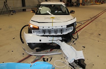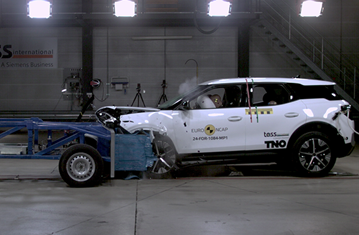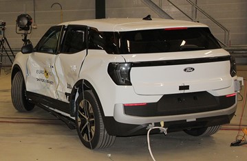 The passenger compartment of the Explorer remained stable in the frontal offset test. Other than the lower leg of the driver, protection of which was adequate, all critical body areas of both the driver and passenger were well protected. Ford demonstrated that a similar level of protection would be provided to the knees and femurs of occupants of different sizes and those sitting in different positions. Analysis of the deceleration of the impact trolley during the test, and analysis of the deformable barrier after the test, revealed that the Explorer would be a moderately benign impact partner in a frontal collision. In the full-width rigid barrier test, protection of the driver’s chest was rated as marginal, based on dummy readings of compression. Otherwise, critical parts of the body were well or adequately protected. In both the side barrier test and the more severe side pole impact, protection of all critical body regions was good, and the Explorer scored maximum points in this part of the assessment. Control of excursion (the extent to which a body is thrown to the other side of the vehicle when it is hit from the far side) was found to be marginal. The Explorer has a countermeasure to mitigate against occupant-to-occupant injuries in such impacts. In Euro NCAP’s test, this performed well, with good protection of the head of both the driver and passenger. Tests on the front seats and head restraints demonstrated good protection against whiplash injuries in the event of a rear-end collision. A geometric analysis of the rear seats also indicated good whiplash protection. The Explorer has an advanced eCall system which alerts the emergency services in the event of a crash, and there is a system to prevent secondary impacts after the car has been in a collision. Ford demonstrated that the doors and windows would be openable to allow occupants to escape in the event of vehicle submergence.