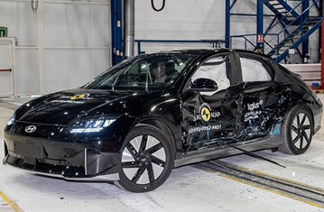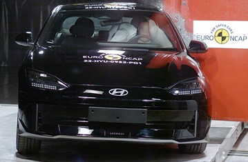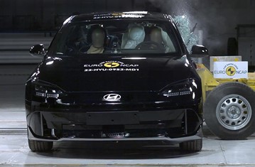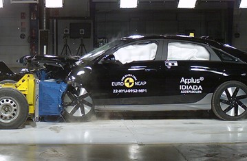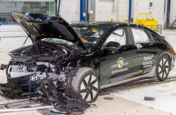 The passenger compartment of the IONIQ 6 remained stable in the frontal offset test. Dummy readings indicated good protection of the knees and femurs of both the driver and passenger. Hyundai demonstrated that a similar level of protection would be provided to occupants of different sizes and to those sitting in different positions. Good protection was provided to all critical body areas of the passenger dummy. Analysis of the deceleration of the impact trolley during the test, and analysis of the deformable barrier after the test, revealed that the IONIQ 6 would be a benign impact partner in a frontal collision. In the full-width rigid barrier test, protection of all critical body areas was good or adequate. In the side barrier test, protection of all critical body areas was good and the IONIQ 6 scored maximum points. In the more severe side pole impact, protection of the chest was adequate, and that of the head, abdomen and pelvis was good. Control of excursion (the extent to which a body is thrown to the other side of the vehicle when it is hit from the far side) was found to be adequate. The IONIQ 6 has a counter-measure to mitigate against occupant to occupant injuries in such impacts. The system performed well in Euro NCAP’s test, with good protection of occupants’ heads. Tests on the front seats and head restraints demonstrated good protection against whiplash injuries in the event of a rear-end collision. A geometric analysis of the rear seats indicated marginal whiplash protection. The IONIQ 6 has an advanced eCall system which alerts the emergency services in the event of a crash and a system which automatically applies the brakes to prevent secondary collisions.