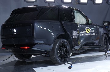 The passenger compartment of the Range Rover remained stable in the frontal offset test. Dummy readings indicated good protection of the knees and femurs of both the driver and passenger. However, Land Rover did not provide evidence to demonstrate that a similar level of protection would be provided to occupants of different sizes and to those sitting in different positions, and the score for this body region was penalised. Analysis of the deceleration of the impact trolley during the test, and analysis of the deformable barrier after the test, revealed that the Range Rover would be an aggressive impact partner in a frontal collision, and the score was penalised accordingly. In the full-width rigid barrier test, protection of the chest of the rear passenger was rated as marginal, based on dummy readings of compression. In both the side barrier impact and the more severe side pole impact, protection of all critical body areas was good and the Range Rover scored maximum points in this part of the assessment. Control of excursion (the extent to which a body is thrown to the other side of the vehicle when it is hit from the far side) was found to be adequate. The Range Rover has no counter-measure to mitigate against occupant to occupant injuries in such impacts. Tests on the front seats and head restraints demonstrated good protection against whiplash injuries in the event of a rear-end collision. A geometric analysis of the rear seats also indicated good whiplash protection. The Range Rover has an advanced eCall system which alerts the emergency services in the event of a crash and a ‘Post-Crash Braking’ system which automatically applies the brakes to prevent secondary collisions.