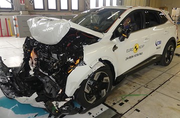 Protection of the head of a struck pedestrian or cyclist was predominantly good or adequate, with poor results recorded on the stiff windscreen pillars and at the base of the screen. Protection of the pelvis was poor at several test locations, but that of the femur was predominantly good. Protection of the knee and tibia ranged from good to weak, depending on test location. The autonomous emergency braking (AEB) system of the Renault can respond to vulnerable road users as well as to other vehicles. The system’s response to pedestrians was adequate and to cyclists was good, although the car does not have protection against ‘dooring’, where a door is suddenly opened in the path of a cyclist approaching from behind. A system to prevent collisions with pedestrians to the rear of the car is available as an option, but was not on the test vehicle. The collision avoidance system performed well in tests of its response to motorcyclists, scoring full points for AEB and scoring adequately for its lane support.
