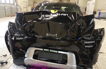 The passenger compartment of the smart #5 remained stable in the frontal offset test. Dummy readings indicated good protection of the knees and femurs of both the driver and the front seat passenger. smart showed that a similar level of protection would be provided to occupants of different sizes and to those sitting in different positions. Protection of the driver’s chest was rated as marginal, based on dummy readings of compression. Analysis of the deceleration of the impact trolley during the test, and analysis of the deformable barrier after the test, revealed that the smart #5 would be a benign impact partner in a frontal collision. In the full-width rigid barrier test, protection was good for all critical body regions of the driver but that of the rear passenger’s chest was rated as marginal, based on compression. In the side barrier test, the smart #5 provided good protection to all critical body areas and scored maximum points. However, in the more severe side pole impact, dummy readings of rib compression indicated weak protection for the chest. Control of excursion (the extent to which a body is thrown to the other side of the vehicle when it is hit from the far side) was found to be adequate The smart #5 has a countermeasure to mitigate against occupant-to-occupant injuries in such impacts. The airbag performed well in Euro NCAP’s tests with dummy readings indicating good protection for both the driver and passenger. Tests on the front seats and head restraints demonstrated good protection against whiplash injuries in the event of a rear-end collision. A geometric analysis of the rear seats also indicated good whiplash protection. The car has an advanced eCall system which alerts the emergency services in the event of a crash, and a system to prevent secondary impacts after the car has been in a collision. smart demonstrated that the doors and windows would be openable to allow occupants to escape in the event of vehicle submergence.