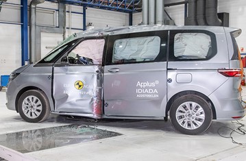The passenger compartment of the Multivan remained stable in the frontal offset test. Dummy readings showed good protection of the knees and femurs of the driver and passenger. VW showed that a similar level of protection would be provided to occupants of different sizes and to those sitting in different positions. With the exception of the driver’s lower leg, protection of which was rated as adequate, protection of all critical body areas was good for both the driver and front seat passenger. Analysis of the deceleration of the impact trolley during the test, and analysis of the deformable barrier after the test, revealed that the Multivan would be an aggressive impact partner in a frontal collision. In the full-width rigid barrier test, all protection of all critical body areas was good or adequate. In both the side barrier test and the more severe pole impact, dummy readings indicated good protection of all critical body areas. However, inspection of the pole test vehicle revealed that one of the clips which holds the side curtain airbag to the roof rail had become detached. The score for the head was penalised for this unintended behaviour, both in the pole test and the side barrier impact where the airbag also plays a critical role. Control of excursion (the extent to which a body is thrown to the other side of the vehicle when it is hit from the far side) was found to be marginal. The Multivan has a counter-measure to mitigate against occupant to occupant injuries in such impacts and this performed well in Euro NCAP's test. Tests on the front seats and head restraints demonstrated good protection against whiplash injuries in the event of a rear-end collision. A geometric analysis of the rear seats also indicated good whiplash protection. The Multivan has an advanced eCall system which alerts the emergency services in the event of a crash. The car also has a system which applies the brakes after an impact, to avoid secondary collisions.